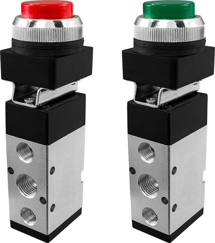 Пневмокнопки относятся к направляющей аппаратуре и служат для управления направлением движения потоков сжатого воздуха. Управление осуществляется за счет переключения схемы соединения внутренних каналов распределителя с входными и выходными присоединительными отверстиями.