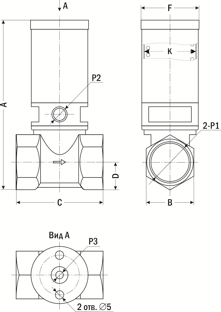 диаметр привода, К | A | B | C | D | F | P1 | P2 | P3 | |