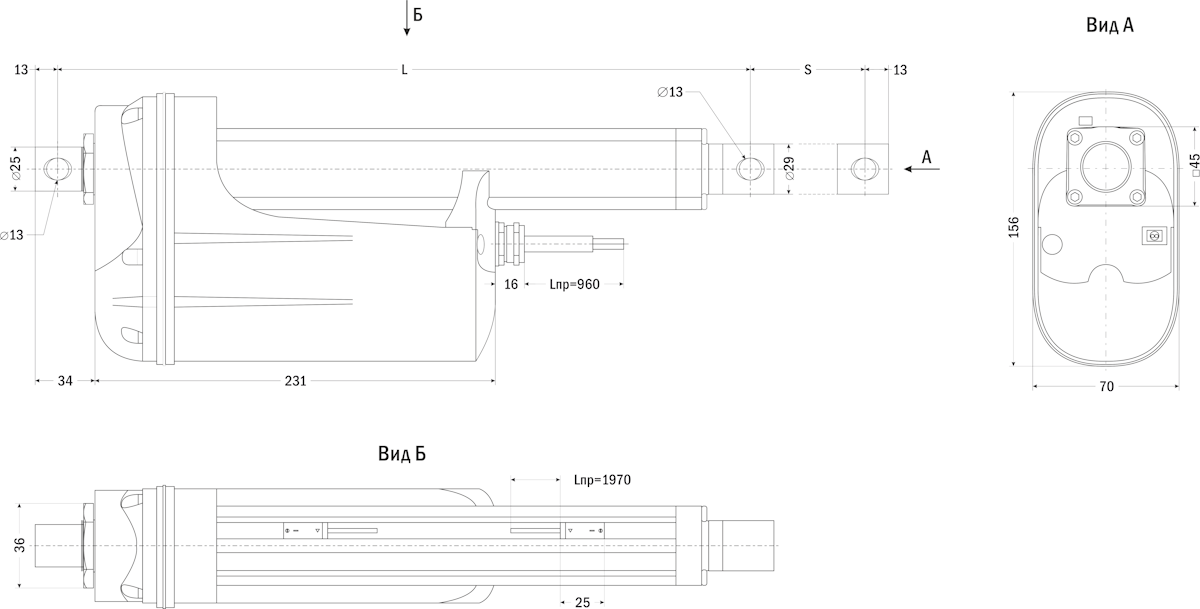 | Длина хода штока (S) + 200 мм (S<300 мм)
