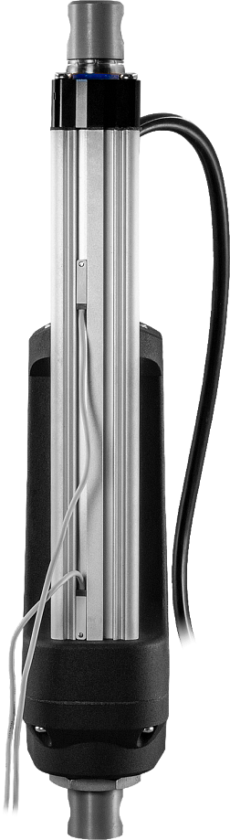- Два внешних бесконтактных датчика (датчик Холла), регулируемых по месту установки, ограничивают ход на выталкивание и втягивание, обеспечивают остановку штока в заданном положении (см. чертеж), подключаются к цепи управления питанием