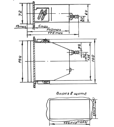 Монтаж:Приборы предназначены для утопленного щитового монтажа. Монтаж на щите осуществляется с помощью прижимных кронштейнов, входящих в комплект. Напоромер устанавливается горизонтально относительно лицевой панели без наклона и перекоса и соединяется с объектом контроля эластичными трубками с внутренним диаметром не менее 2,5 мм. Расстояние между прибором и объектом отбора давления должно быть минимальным, чтобы исключить запаздывание в показаниях.