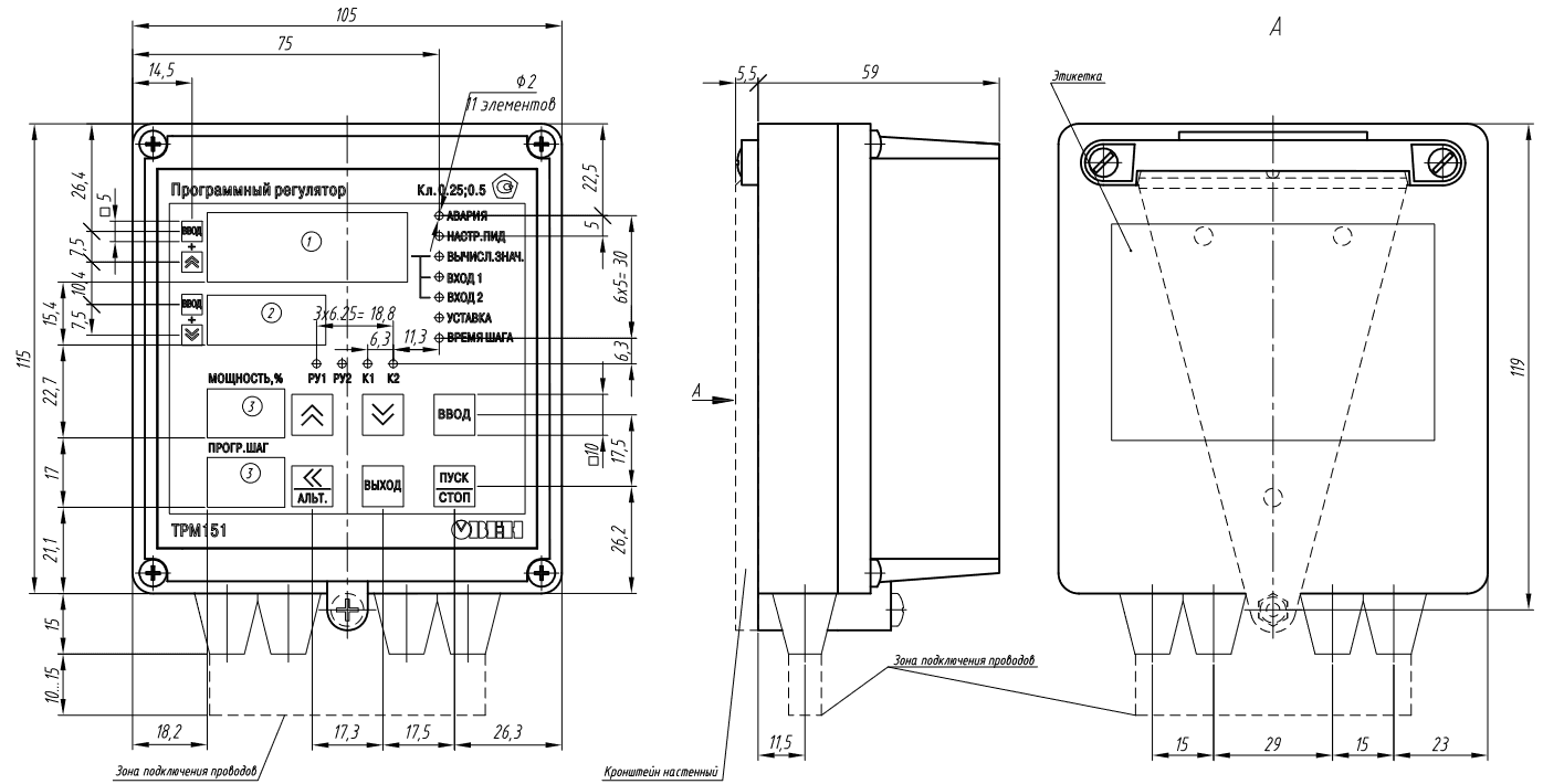130×105×65 мм, IP44 96×96×70 мм, IP54 (со стороны передней панели) |