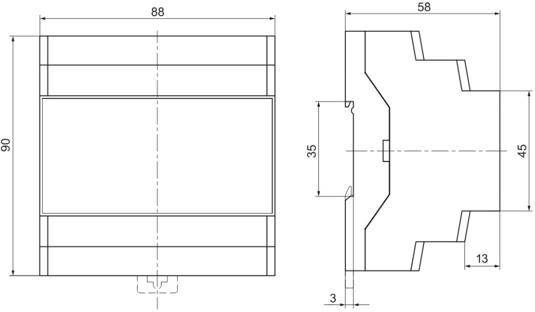 | DIN-реечный Д | 88×90×59мм, IP20 |