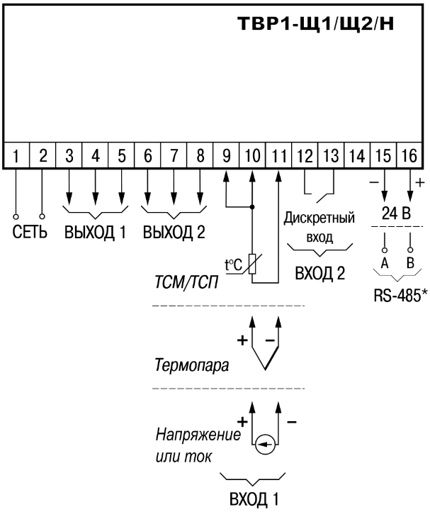 | Т | Выход для управления твердотельным реле