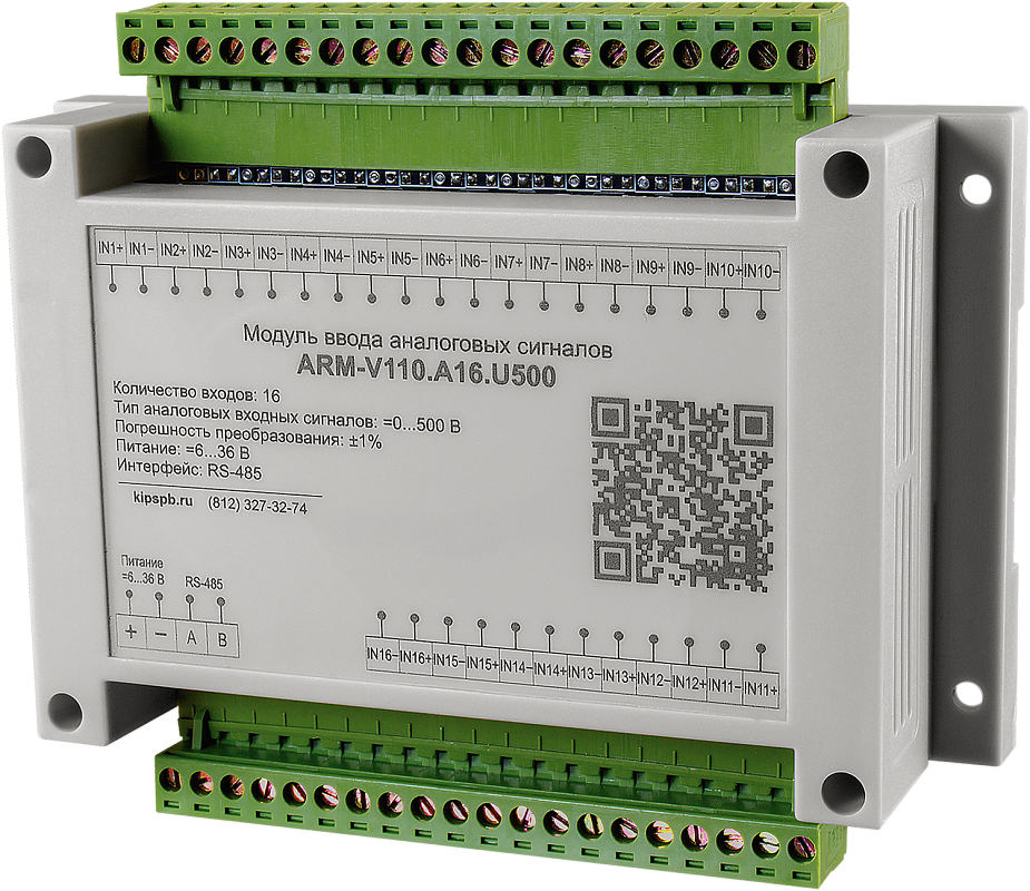 Модуль ввода аналоговых сигналов ARM-V110.A16.U500 предназначен для измерения аналоговых сигналов встроенными аналоговыми входами, преобразования измеренных величин в значение физической величины и последующей передачи этого значения по сети RS-485. Приборы могут быть использованы для построения автоматизированных систем сбора данных в различных областях промышленности, сельского и коммунального хозяйства, на транспорте.