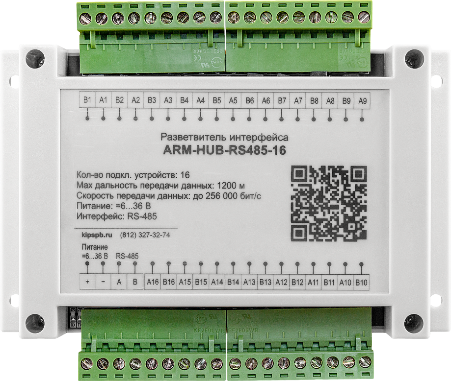 Разветвитель интерфейса ARM-HUB-RS485-16 предназначен для построения распределенных линий связи, функционирующих по интерфейсу RS-485.