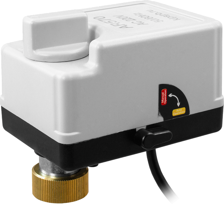 - Два режима работы: автоматический (поворот вала электродвигателем) и ручной (поворот ручкой дублера)