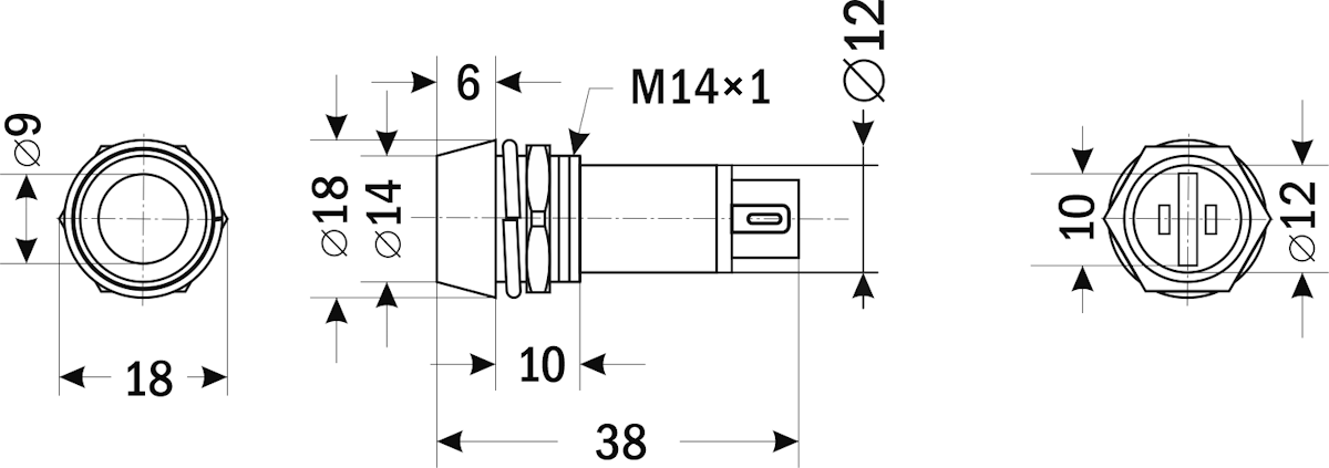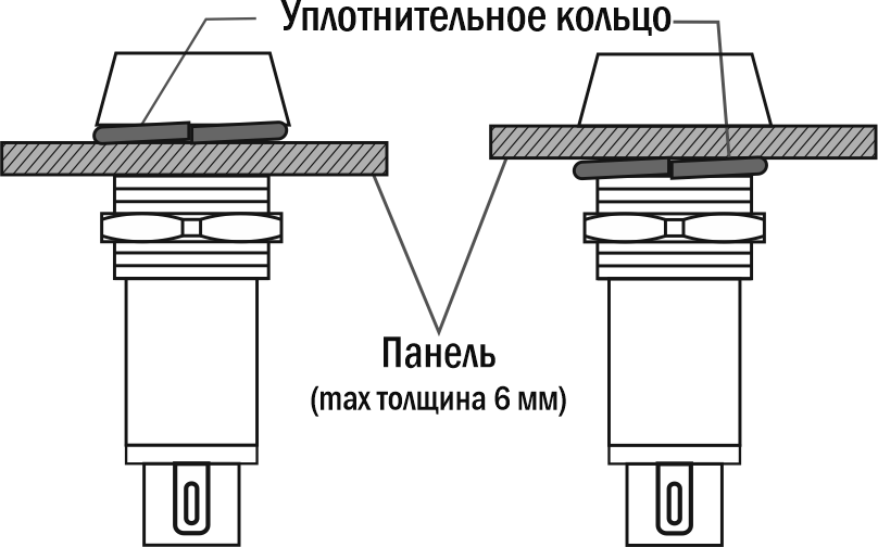 - Монтаж в плоские панели толщиной до 6 мм, фиксация стопорной гайкой