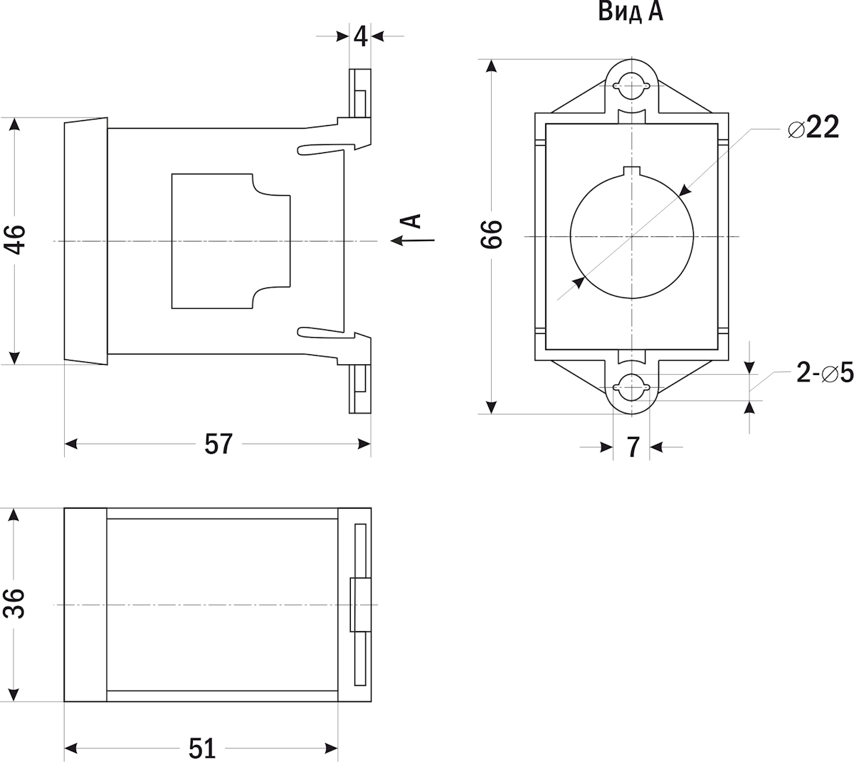 Адаптер на DIN-рейку и плоскую поверхность АДК22-57 предназначен для монтажа устройств управления с установочным диаметром 22 мм и монтажной глубиной не более 50 мм