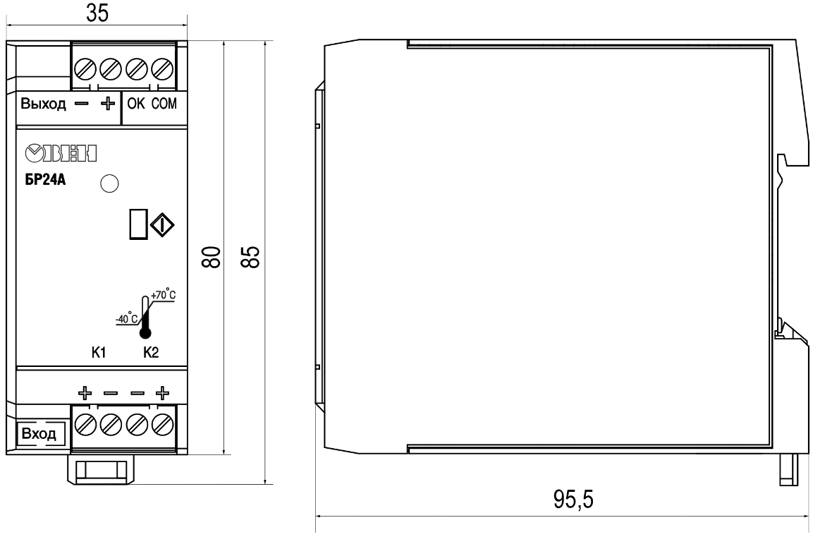 - Удобный монтаж в шкаф автоматики: корпус шириной 35 мм.