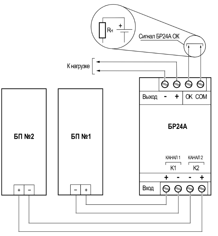 | БР24А ОК (замкнут) | Выход прибора работает. Работают оба входных канала или любой из каналов |