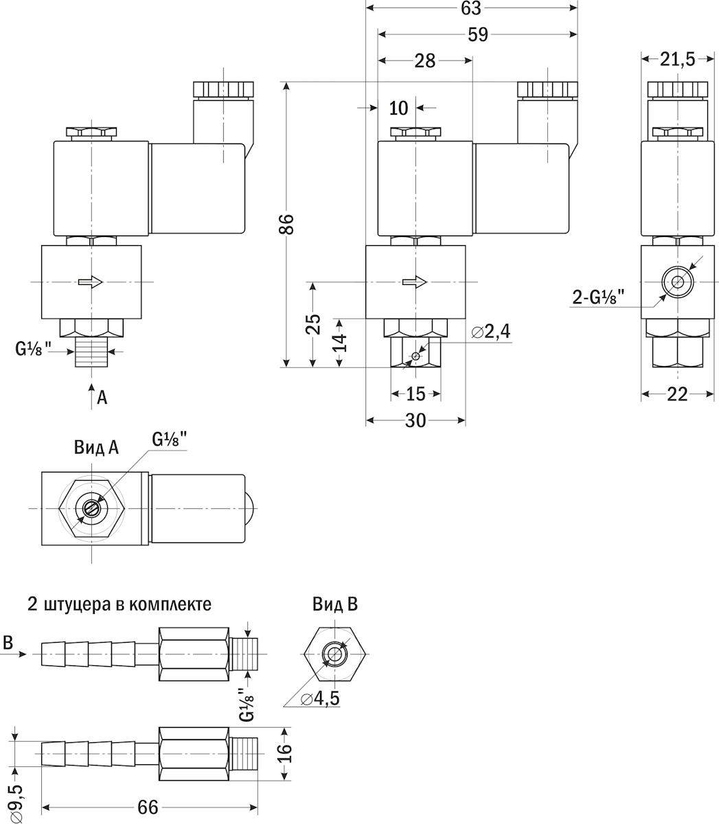 - 2 штуцера ∅9,5 мм в комплекте