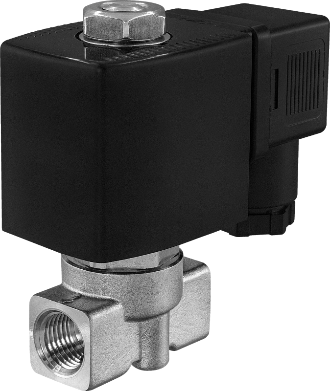 Принцип действия и область применения: Нормально закрытый соленоидный клапан – это магнитный клапан, в котором закрытое положение сохраняется, если управляющее напряжение на его индукционную катушку не подается. При подаче напряжения на катушку нормально закрытый клапан открывается и пропускает через себя поток рабочей среды. При отключении управляющего напряжения этот клапан автоматически закрывается и перекрывает поток рабочей среды в трубопроводе. При обрыве провода управляющего напряжения клапан будет закрыт.